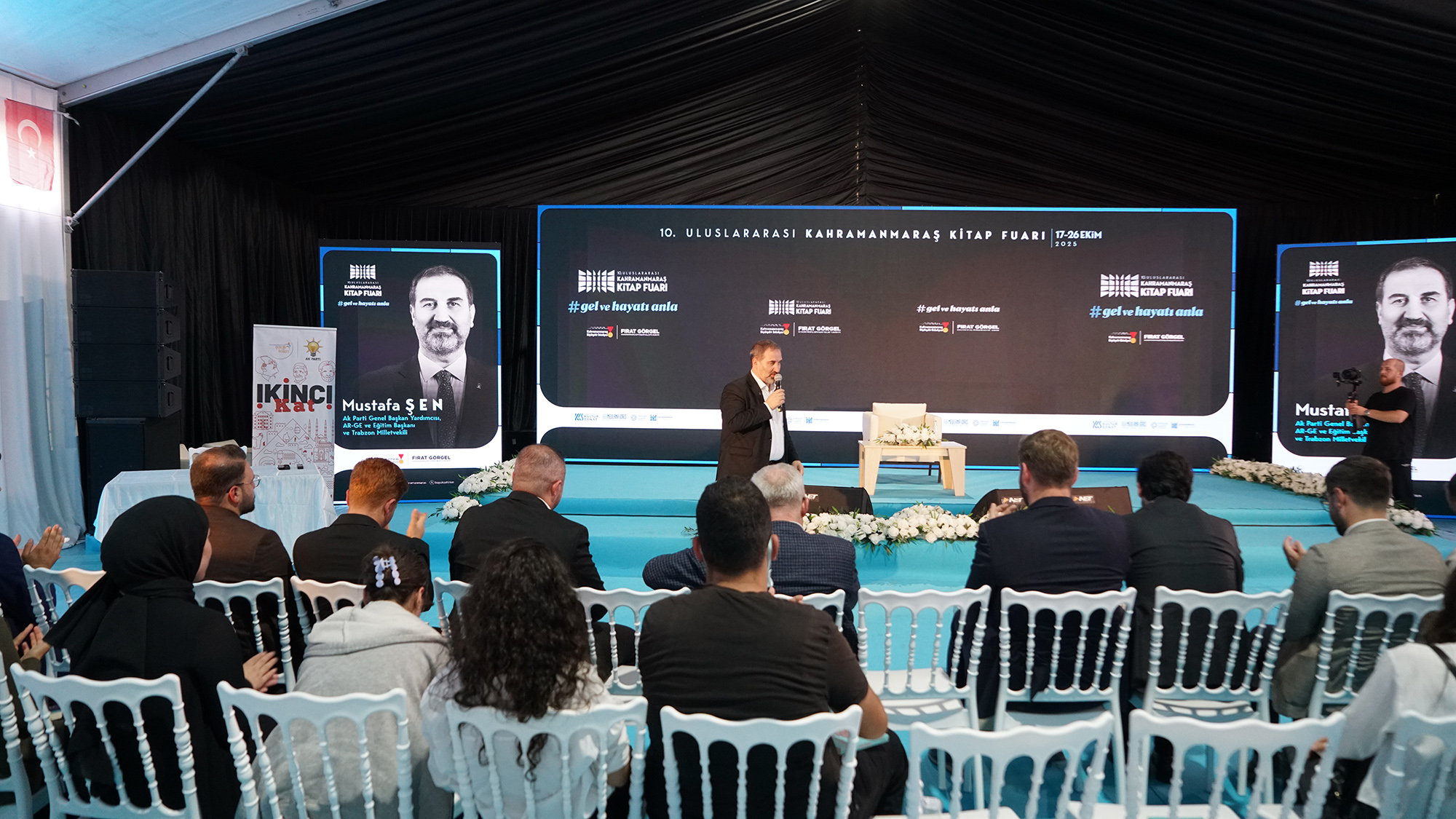 Düzenlenen görkemli açılışla ziyaretçilerine kavuşan 10. Uluslararası Kahramanmaraş Kitap Fuarı’nın ilk söyleşi programının konuğu AK Parti AR-GE ve Eğitimden Sorumlu Genel Başkan Yardımcısı Mustafa Şen oldu. “Kardeşliğin Yurdu Türkiye” başlığı altında gerçekleştirilen programda Şen, birlik, beraberlik ve kardeşlik vurgusu yaparak Türkiye’nin ortak geleceği üzerine önemli mesajlar verdi.