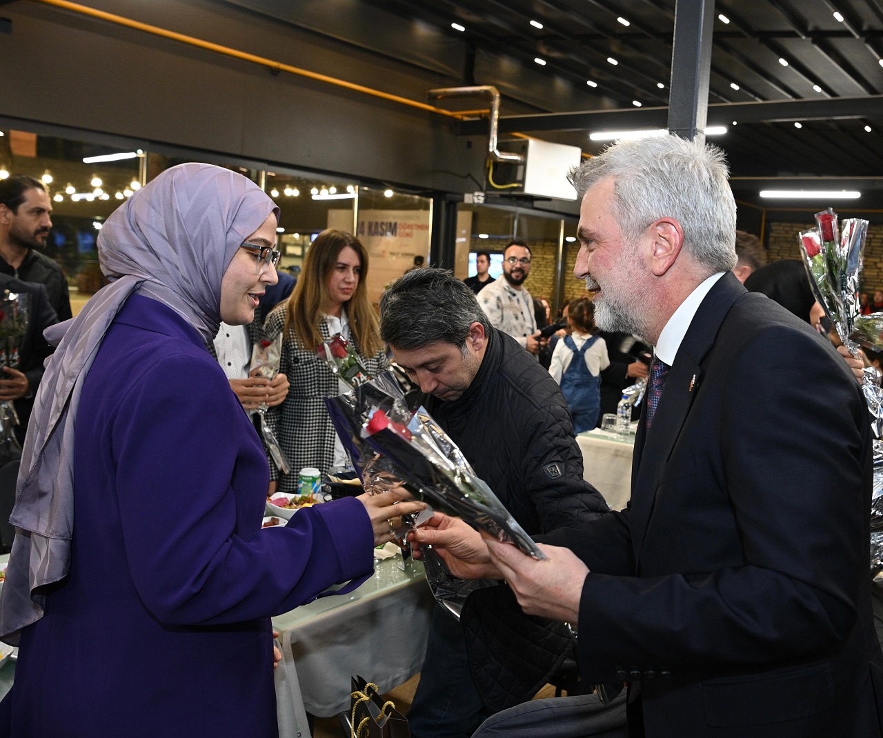 Kahramanmaraş Büyükşehir Belediyesi, 24 Kasım Öğretmenler Günü dolayısıyla anlamlı bir program düzenleyerek şehrin eğitim neferlerini bir araya getirdi. Çamlıca Restoran’da gerçekleştirilen buluşmada Büyükşehir Belediye Başkanı Fırat Görgel, öğretmenlerle bir araya gelerek sohbet etti, onların özel gününü kutladı ve her birine çiçek takdim etti. Program boyunca öğretmenlerle yakından ilgilenen Başkan Görgel, sıcak ve samimi mesajlarla eğitimin toplumdaki belirleyici rolüne dikkat çekti.