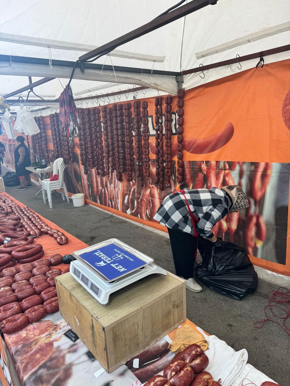 Ekipler, son denetim sırasında Yöresel Çarşı olarak kurulan bir pazarda sucuk satışı gerçekleştiren firmayı kapsamlı incelemeye aldı.