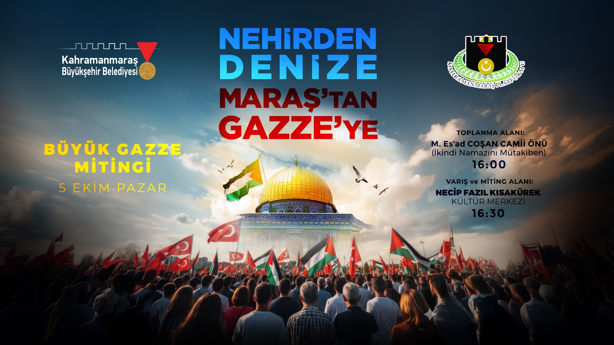 Gazze’de yaşanan insanlık dramına dikkat çekmek için Büyükşehir Belediyesi ve Kahramanmaraş Platformu iş birliğiyle 5 Ekim Pazar günü yürüyüş ve miting gerçekleştirilecek.